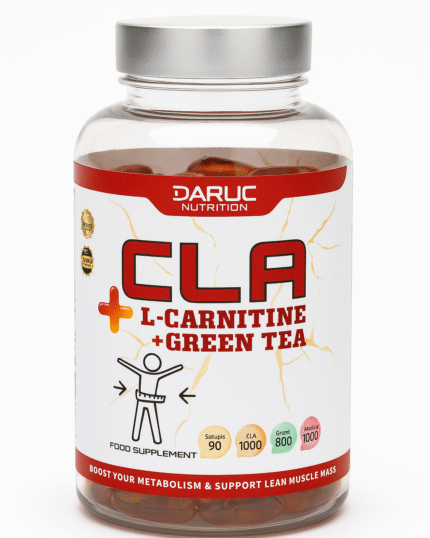 DARUC CLA + L-Carnitine + Green TeaYour daily fat-burning and metabolism-boosting trio.Formulated with CLA, L-Carnitine, Green Tea Extract & EGCG to support faster fat loss, higher energy, and improved body definition — all in clean, easy-to-take softgels.